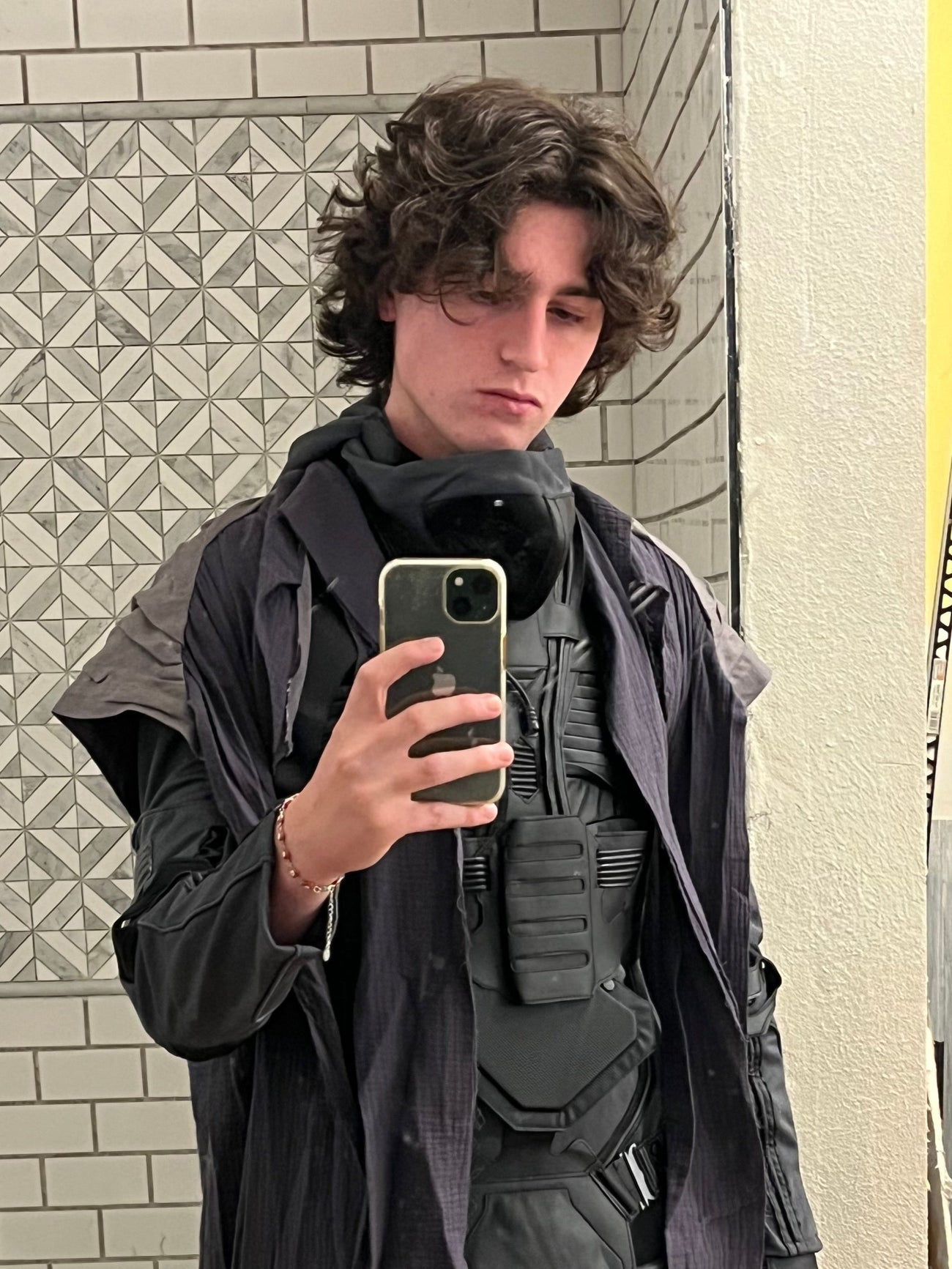 The journey almost went off without a hitch, but then Dueve got past his wardrobe fitting for the promo. As an additional perk, the Avenue Manteam styled his natural hair perfectly for his big on-camera debut, "and then they ended up putting a wig on me anyway," adds Dueve, though he doesn't try to argue with Chalamet's creative vision.