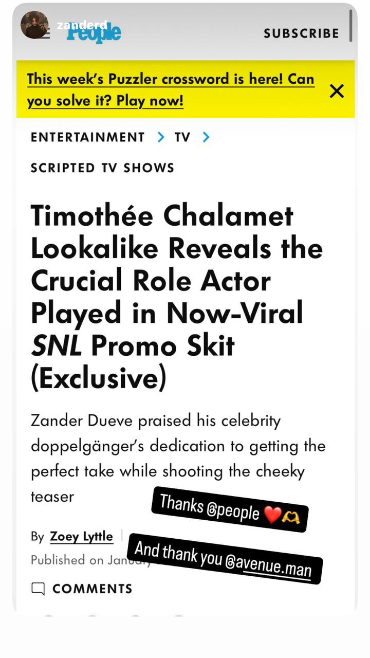 We are thrilled to announce that two of our Avenue Man models, Zander Dueve and Miles Mitchell, have been highlighted in an exclusive article on People.com! The article sheds light on the viral buzz surrounding Timothée Chalamet lookalikes, with Zander and Miles leading the conversation thanks to their striking resemblance to the acclaimed actor.